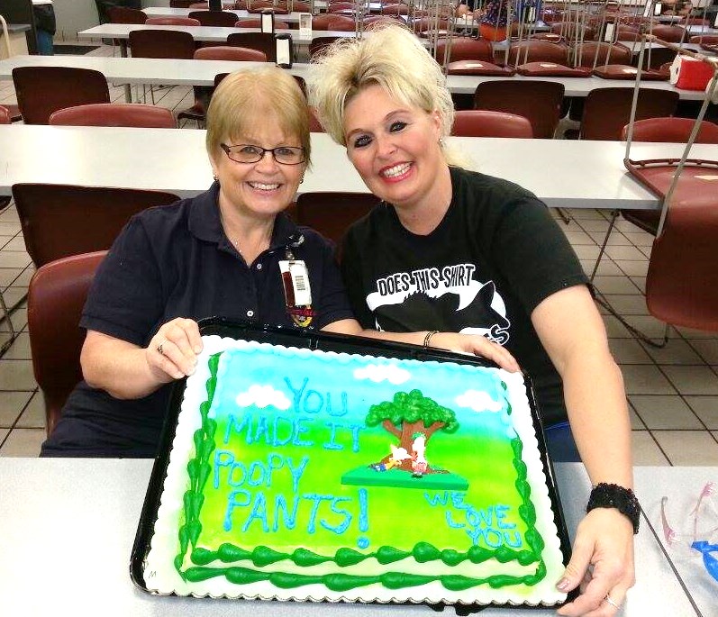 The cake was from Carol and Tina. It read: “YOU MADE IT POOPY PANTS WE LOVE YOU“….Now isn’t that special. Tina is such an AWESOME person. Such a jewel. We all love her dearly. She helps us all get through the day with her laughter that only she can bring. Her smile is one you will never forget. So has no idea what she means to everyone.