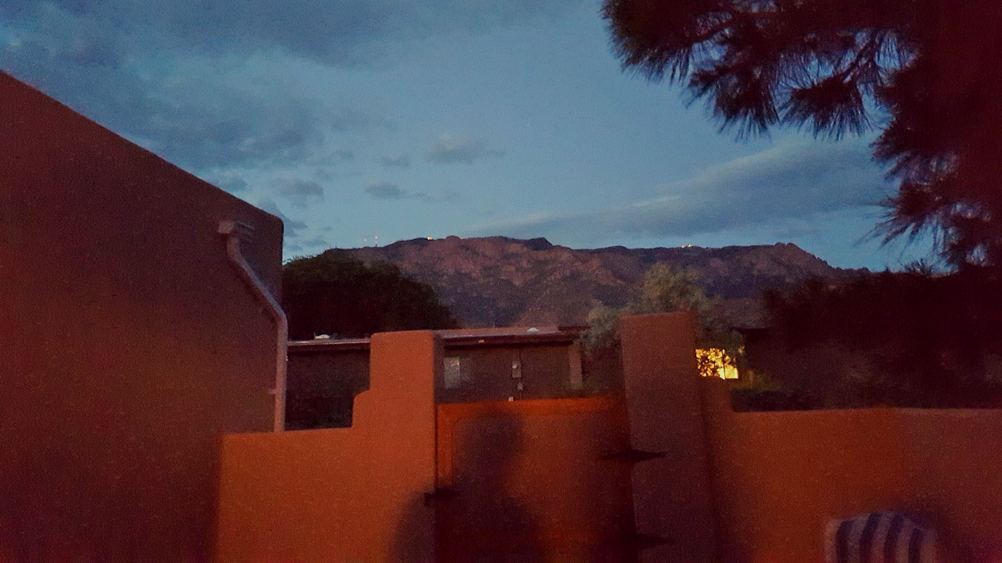 After a fun evening, which included visiting and watching the NBA finals…lol..in Overtime, I might add, we headed back to Gino’s. Again the views of Albuquerque at night are stunning. All the city lights, the strips of lights of moving cars on the freeways’ and the lights of the homes all the way up to the foothills of the mountains