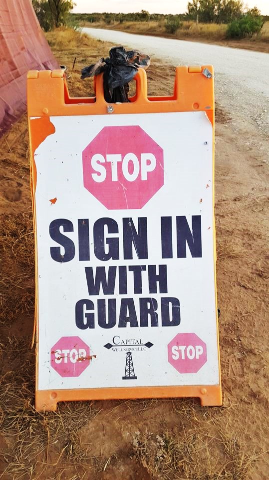 So finally Chris left and some traffic began. Not much. We are at a site which is called a rework site. The well is already functioning but they are going in and drill deeper into the rock and stone level and then decide if they are going to frack. From what I understand, their can be more oil trapped with in that level or below. By fracking, they are forcing sand and water into the area to brake it apart and extrude the rest of the oil. They said this gate could be 4 to 6 weeks but could be longer. Just a wait and see…….We like the UNKOWN….