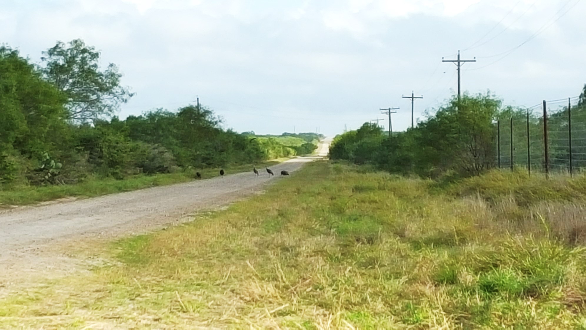 Wild Turkeys, roam the roads and ranch property. Groups of a dozen or more….