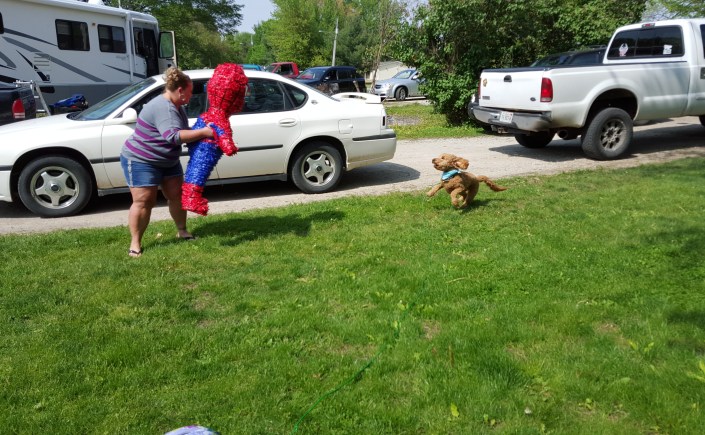 We have arrived at Altoona Iowa to work our Summer Job at “Adventureland”. It is a really cool amusement park. I subscribed to an Emailed newsletter couple of years ago. It is called “Workers on Wheels”. It is emailed once or twice a week and is full of tips and jobs for workamping. Last December I was reading it, and this job was posted. It was close to home, only 4 hours, free campground, and hourly pay with bonus at the end of the season…..Why Not….Filled out the app online that nite. The next morning my phone rang. It was Gary from HR. We completed a 2 hour phone interview that afternoon, and with in several days all paperwork was mailed back and forth……..Now the fun begins…….We were able to pick our own areas. I chose Games, and Rich chose Rides. Now tell me, Who has never as a kid, had a dream to work in an Amusement park……