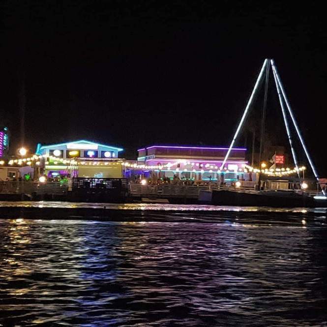 The Southern Wave Catamaran docks at the edge of the patio. The new owners are really making it a great place to come and spend the afternoon or evening for fun, food and entertainment.