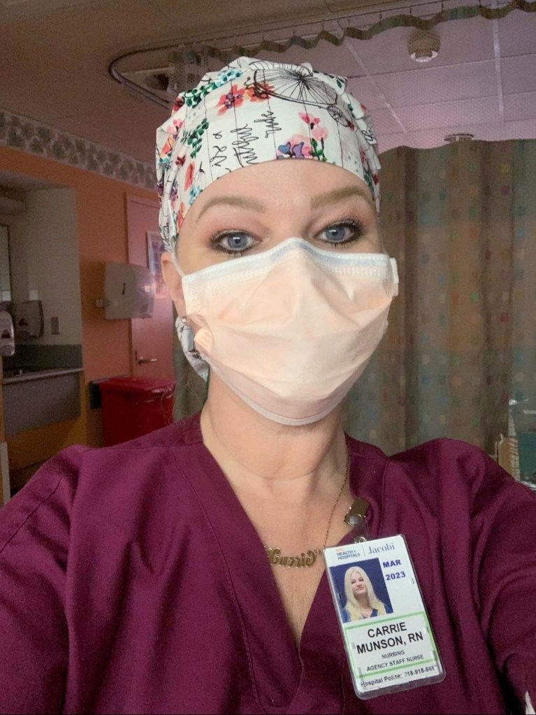 Thank You Carrie, for allowing me to print this in my blog. When this began, their didn’t seem to be as much censorship as their is now. Now these stories couldn’t be told as they were back then. I did get in trouble for posting after you and Tammy went to Texas. So this is a chapter in your life you will never forget. What you and all the medical staff have done is beyond words. March of 2020 was the beginning of the Covid 19 Pandemic. No one knew what the future was to be, but they never dreamed we would still be in it a year later. Krucial Emergency Staffing was called in to help NYC. The City was brought to its knees. All of Broadway was shut down. All business were closed, NYC streets became a ghost town. The hospitals were overflowing with Covid patients. I believe, you answered the First Deployment to NYC near the end of March. Tammy, my Daughter answered the 2nd or 3 Deployment the very first week of April. Tammy’s birthday was the 6th of April, she celebrated it in NYC. Brittney also came with her, later 4 more came from Peoria Illinois. All of you had been employed by OSF Hospital at some time or another. I’m sure their might have been more from Peoria, but that’s all I knew of. Thousands and Thousands of nurses, and many different categories of medical staff, came to help the NYC hospitals from all around the USA. When Tammy arrived. she was assigned to Lincoln in the Bronx. I asked her. “What floor, what dept are you in”. She told me “its all Covid. This was OB on Monday, today the whole hospital is Covid” (Wed)…..I was shocked. Tammy would tell me of the shortages of PPE for themselves, meds and supplies you needed for the patients. Not only the patients were coming in sick and dying, also the staff was coming down with Covid with some of them also passing away. Such Heartache, Pain, plus Ciaos. The hospitals were desperate. The whole City was desperate.