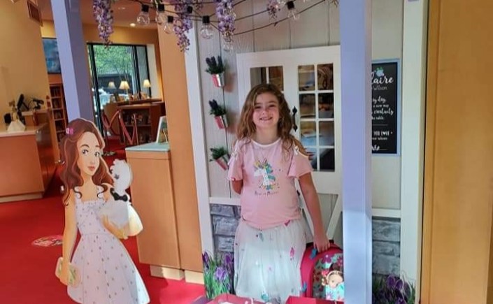 Carly was so excited the night before. They got up early and headed for Chicago downtown by Watertower Place. Carly had her rolling backpack with Willa packed inside, and she dressed in her favorite Unicorn outfit.