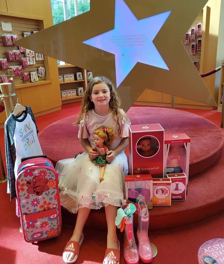 When Tammy was home, she decided to take Carly to Chicago to visit the American Girl Doll Store. American Girl Dolls are almost every girls dream. Carly had received an American girl doll for Christmas the year before. Santa gave her a WellieWisher doll named Willa