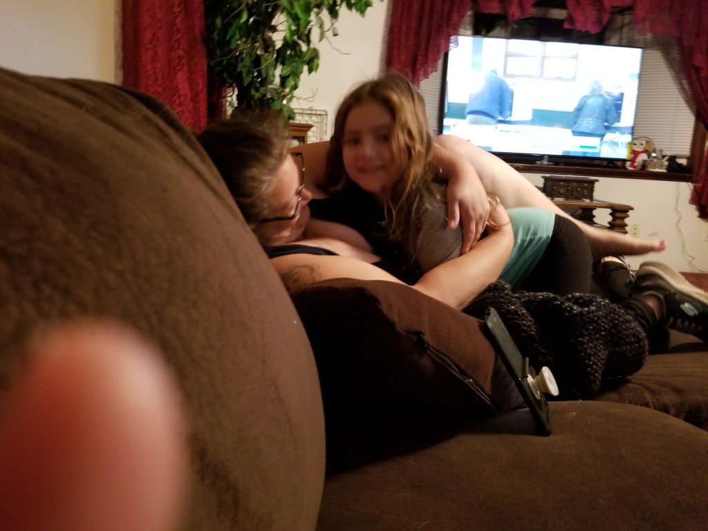 Tina knew we were coming because Tammy was going to take Carly for the week. Fortunately they were doing a week of E-Learning so school wouldn’t be a problem. So Grandpa went over to Tina’s and told Carly they were going to do some errand’s. When Carly came walking into the house, we hid under the blankets on the sofa. She was so surprise when she finally figured it all out. She was excited to have her Mama home.