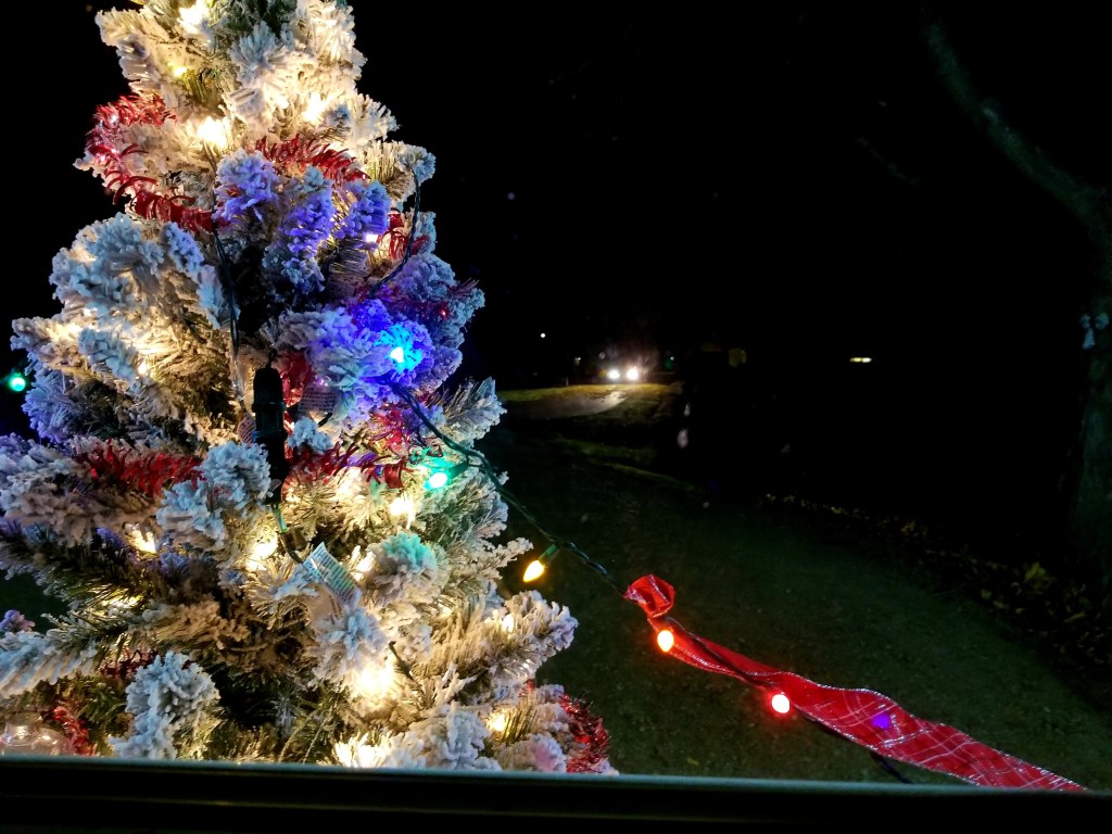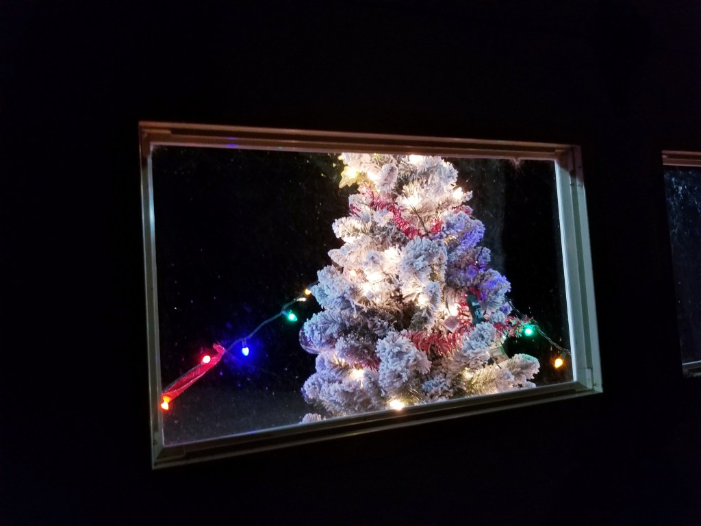 So the next day was Friday. What to do!! What to do next!!! The girls brought Tammy’s large flocked Christmas tree over complete with tree skirt, and decorated it with lights and ornaments. They put it right in front Cameron’s garage door. They hung lights from the tree to the garage lights on each side. They also decorated his little white corner fence at the end of the driveway.