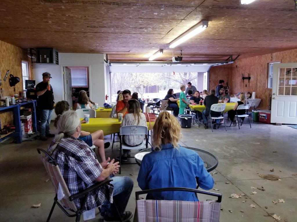 This was the sight from the inside looking through the rollup door window. We waited……and waited….It got cold, remember I’m used to Texas weather. It was probably in the 50’s. We called Grandpa and asked him to call Cameron. He called back, Cameron was at a friends and would be home soon. We waited….and waited…..We got colder….We called Ed, Tina’s husband at 8pm. He called and told Cameron he had the chairs and table for Thanksgiving to set up in his garage. Cameron said he was going through Granville and would be home shortly……We waited…… and waited…..Finally about 8:40, I was watching out the window and ………FINALLY……headlights rounded the corner.!!!!!